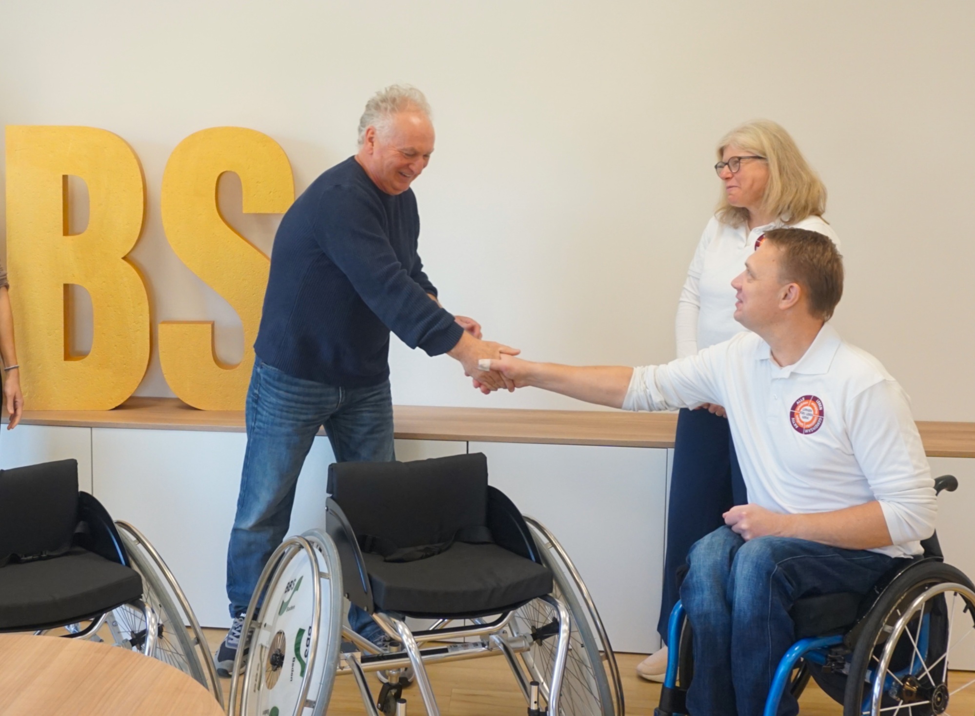 Die Übergabe der Sportrollstühle unterstreicht die enge Verbindung zwischen dem Behindertensportverband und der SRH Stephen-Hawking-Schule. Beide Seiten sehen darin den Beginn einer weitergehenden Zusammenarbeit.